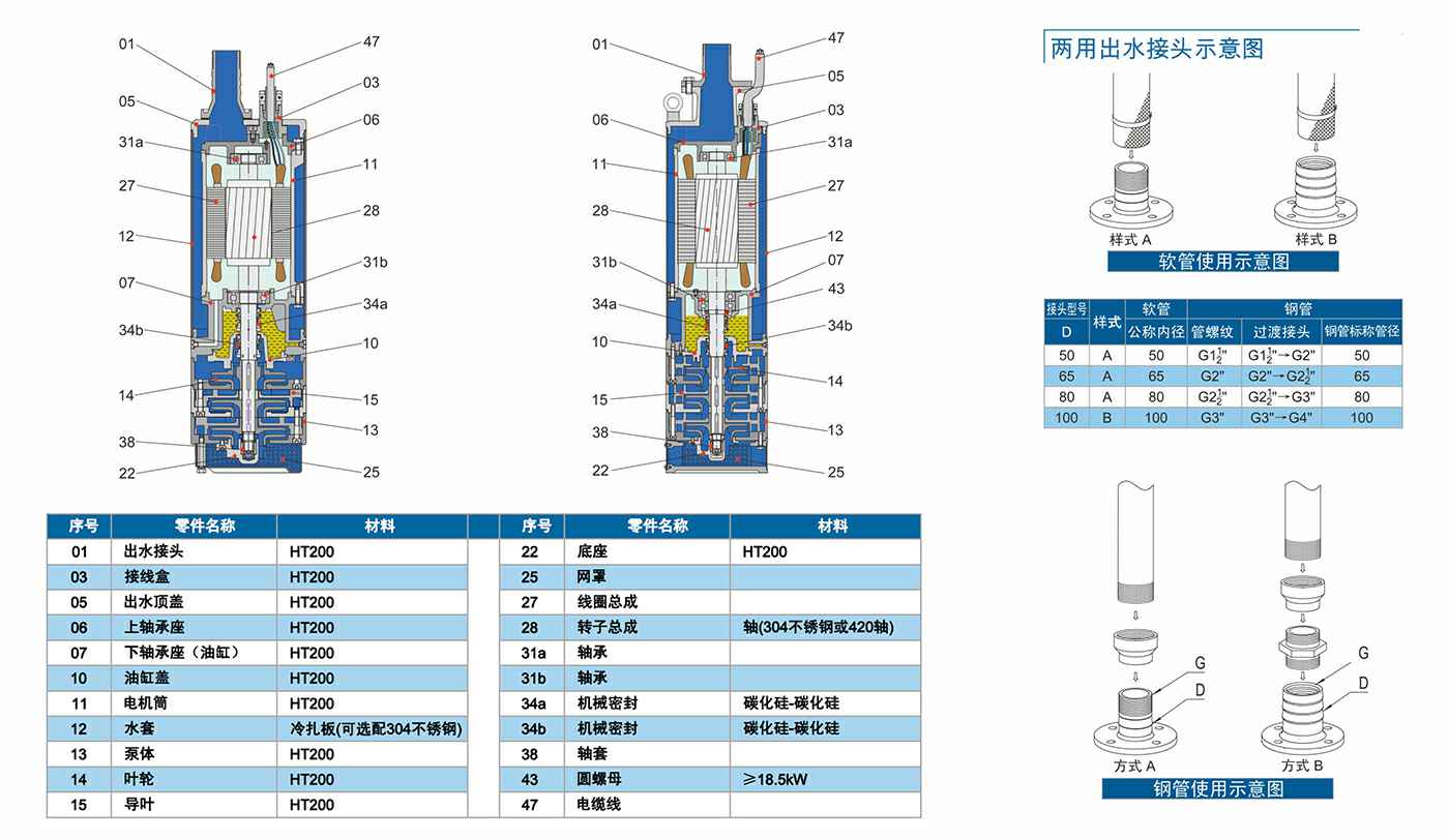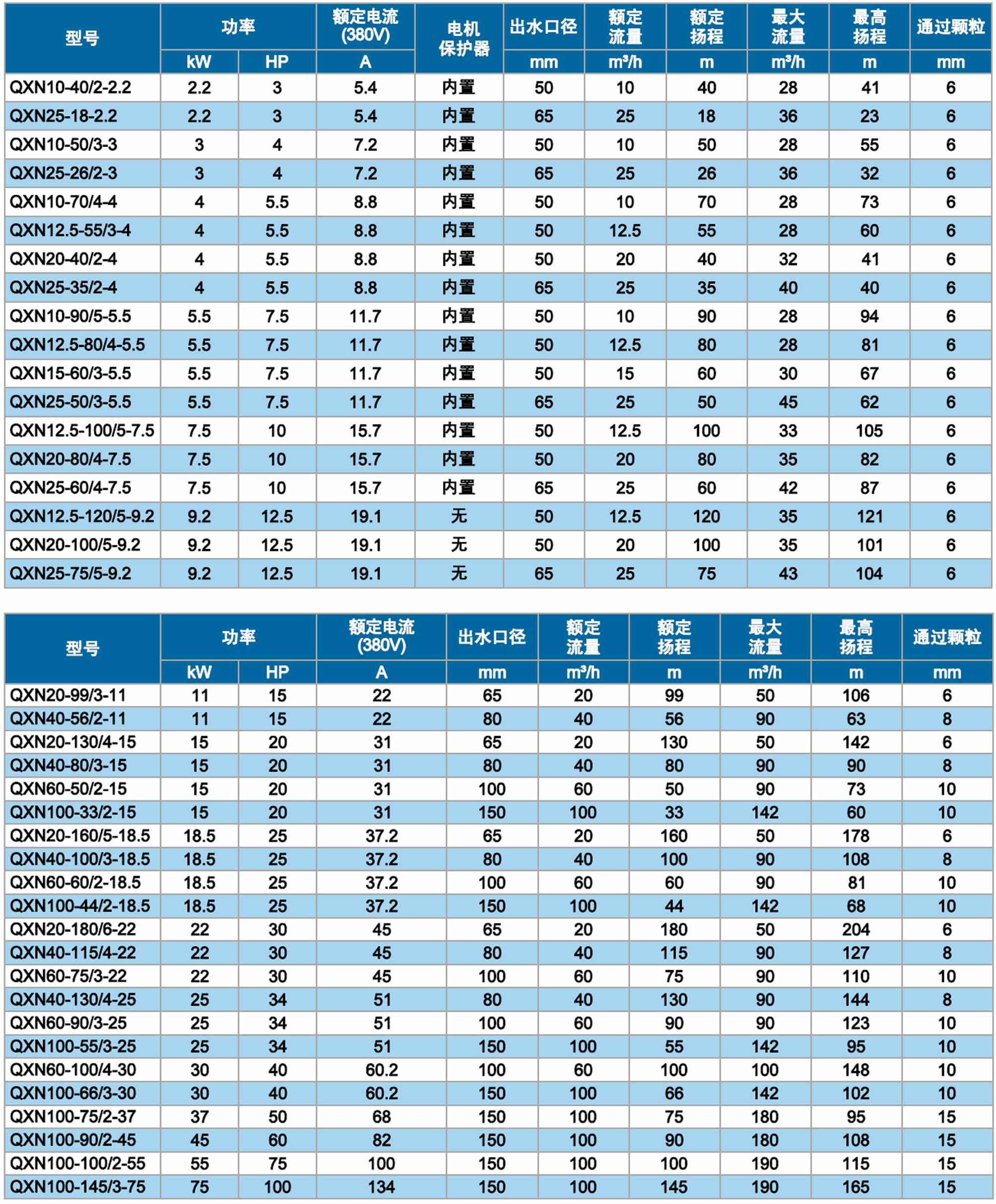 QXN系列是高扬程排水泵,圆柱形设计,可以用于矿山、深井等给排水。采用内装式的顶部出水口设计,在连续低水位运行的情况下可以保持最大的散热效果并且加强了干运转的能力。两套机械轴密封可靠的保证了电机密封。